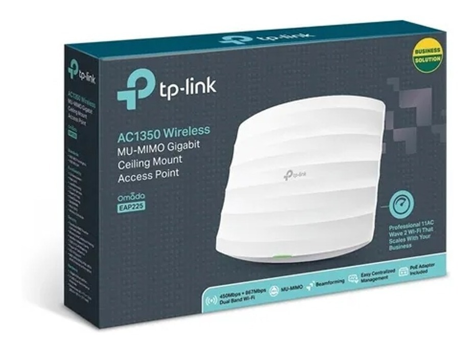 El Access Point Inalambrico TP-Link EAP225 es la solución ideal para quienes buscan una conexión estable y rápida en entornos interiores. Con una velocidad inalámbrica de hasta 1350 Mbps, este dispositivo de la lÃnea Omada permite disfrutar de una experiencia de navegación fluida, ya sea para trabajar, jugar o transmitir contenido en alta definición.