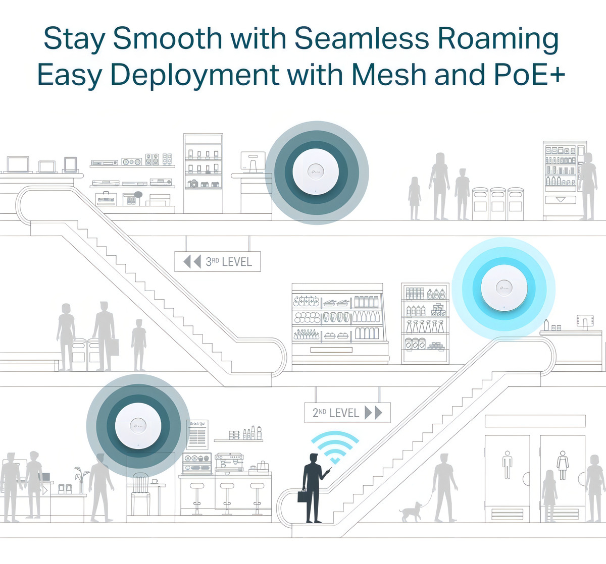 Este modelo de la línea Omada cuenta con conexión PoE, lo que facilita su instalación y reduce el desorden de cables. Con dos antenas internas, el EAP670 asegura una señal potente y de calidad, perfecta para oficinas, comercios o espacios públicos. Además, su tamaño compacto y elegante color blanco se integra fácilmente en cualquier ambiente.