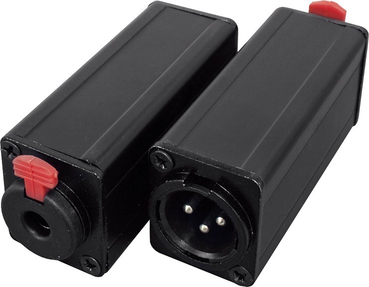 TIPO DE PRODUCTO: ADAPTADORESTIPO: PLUG HEMBRA A XLR MACHO CON TRAFOCARCASA METALICACOLOR NEGROKIT X 2 UNIDADES