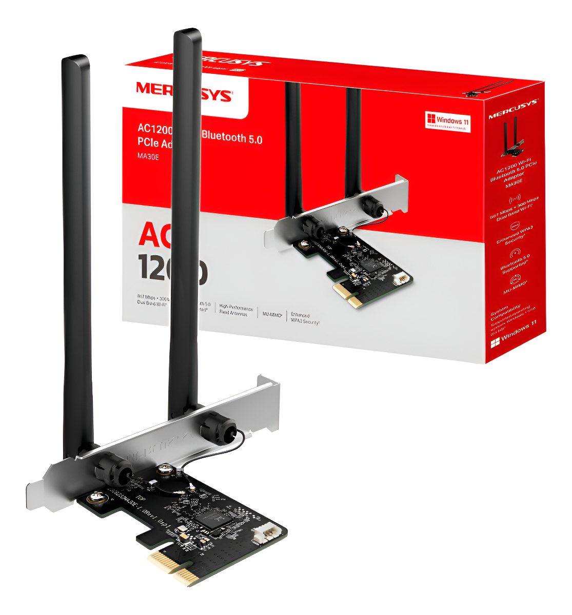 Mercusys Placa de red PCIe WIFI MA30E AC1200 Bluetooth Dual Band 2 antenas
