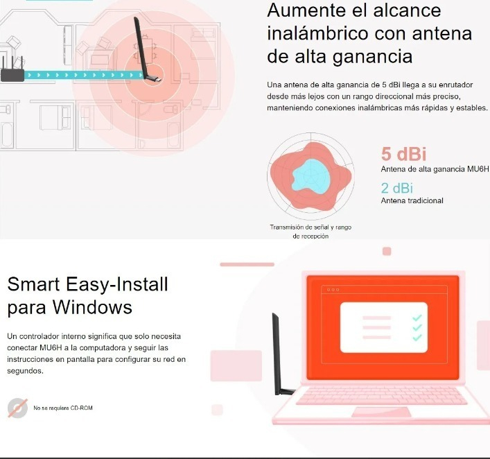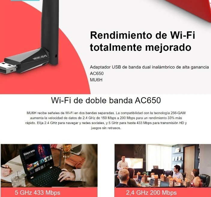 Compatible con los sistemas operativos Windows 11 y Windows 10, el MU6H se conecta fácilmente a tu computadora a través de su interfaz USB. Su tecnología de conectividad WLAN asegura que puedas acceder a redes de 2.4 GHz y 5 GHz, adaptándose a tus necesidades de uso. Este adaptador es perfecto tanto para usuarios domésticos como para profesionales que requieren un rendimiento confiable y eficiente.