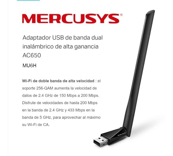 El adaptador USB WiFi Mercusys MU6H AC650 Dual Band es la solución ideal para quienes buscan una conexión a internet rápida y estable. Con una tasa de transferencia de datos de hasta 650 MB/s, este dispositivo permite disfrutar de streaming, juegos en línea y navegación sin interrupciones. Su diseño compacto y la antena externa garantizan una mejor recepción de señal, optimizando la conectividad en cualquier entorno.
