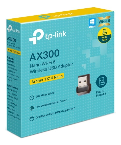 Contenidos del Paquete 1× AX300 Nano Wi-Fi 6 Wireless USB Adapter Archer TX1U Nano