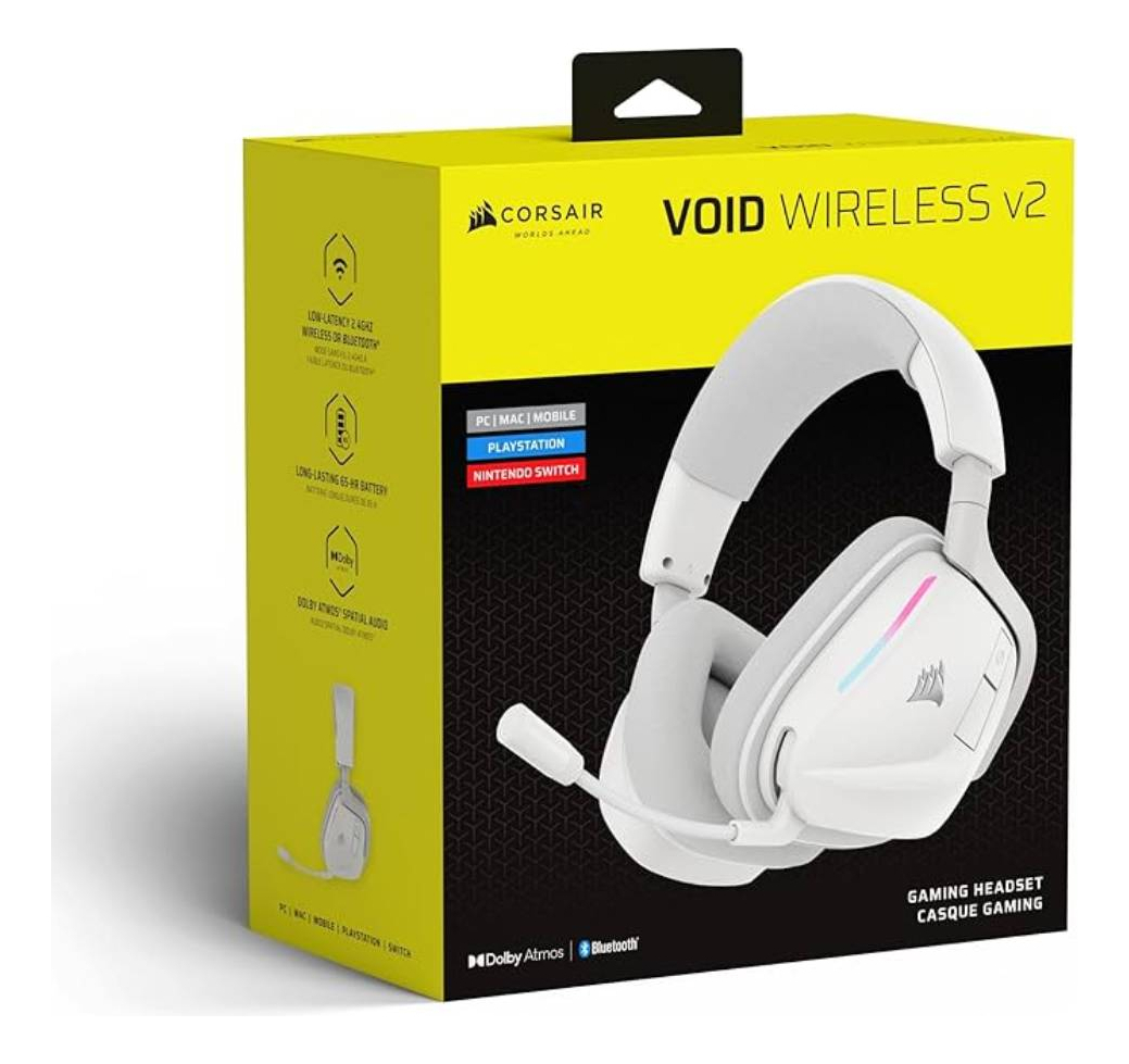 Los auriculares inalámbricos Gamer Corsair Void V2 en color blanco son la opción ideal para los amantes de los videojuegos que buscan calidad de sonido y comodidad. Su diseño over-ear garantiza un ajuste perfecto y una experiencia de inmersión total, permitiéndote disfrutar de largas horas de juego sin incomodidad.