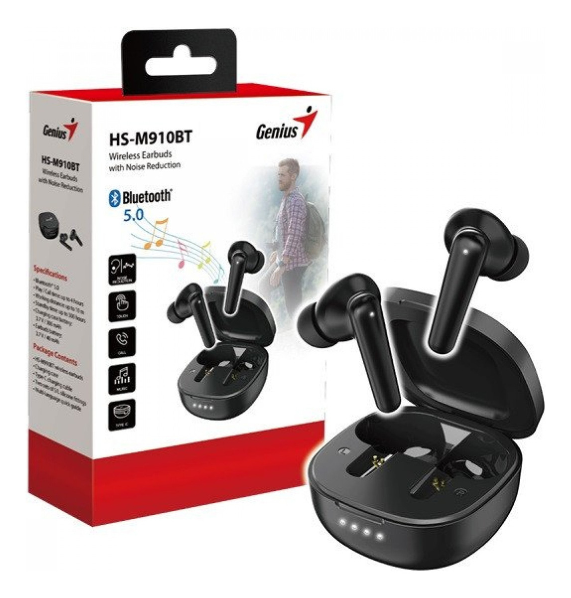 Tecnología de conectividad InalámbricoBluetooth 5.0Fabricante GeniusUSB tipo C Sícolor NegroRango (máx.) 10 metrosCapacidad del estuche de carga 300mAhCapacidad 40mah