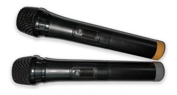 INCLUYE DOS MICRÓFONOS INALÁMBRICOS QUE TRABAJAN CON 2 PILAS AA