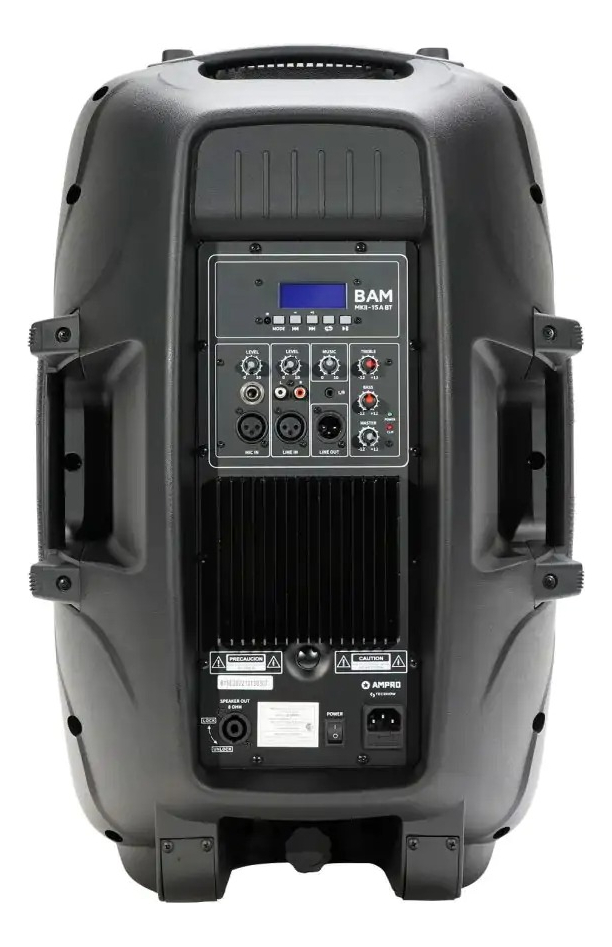 Bam MKII 15A BT, es un altavoz autoamplificado de 1 x 15’’ BF / 1 x 1’’ AF con bobinas móviles duales de 2’’ y una salida de potencia de 450W RMS con una respuesta de frecuencia de 40-18KHz (–10 dB). Esta versión cuenta con una nueva placa para reproducción vía Bluetooth que perfecciona la señal. La unidad viene con entradas/salidas combo de RCA, XLR/1/4” y salida de NL4. El renovado gabinete de Bam MKII 15A BT está realizado en copolímero resistente al impacto y es ideal para aplicaciones móviles o comerciales.
