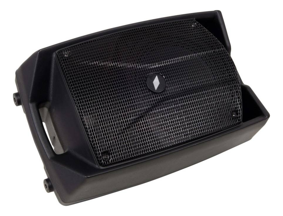 El gabinete V8PLUS, expresión del diseño italiano más avanzado, incluye un asa superior ultracómoda tipo maleta para transportarlo fácilmente. Su forma inclinada permite colocarlo de lado y usarlo también como monitor de escenario.