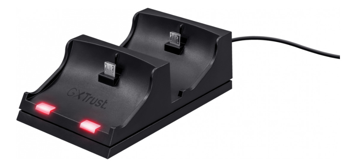 PS4 todo el dÃa¡Gamers de consola, oÃd el mensaje! La base de carga GXT222 Duo Charge Dock es compatible con los mandos PS4 originales. Luz roja, luz verdeEnchufa el conector USB y empieza a cargar. Si la luz LED está roja, la carga está en curso. Si la luz LED está verde, la carga ya…