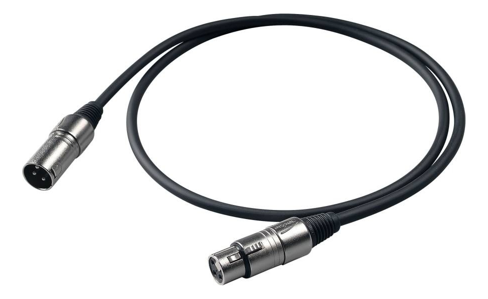 Cable balanceado profesional ensamblado con conector macho PROEL XLR 3P y conector hembra PROEL XLR 3P, carcasa metálica y conexiones traseras/XLR3FVPRO – HPC225 – XLR3MVPRO. Longitud: 5 m. Disponible en negro.