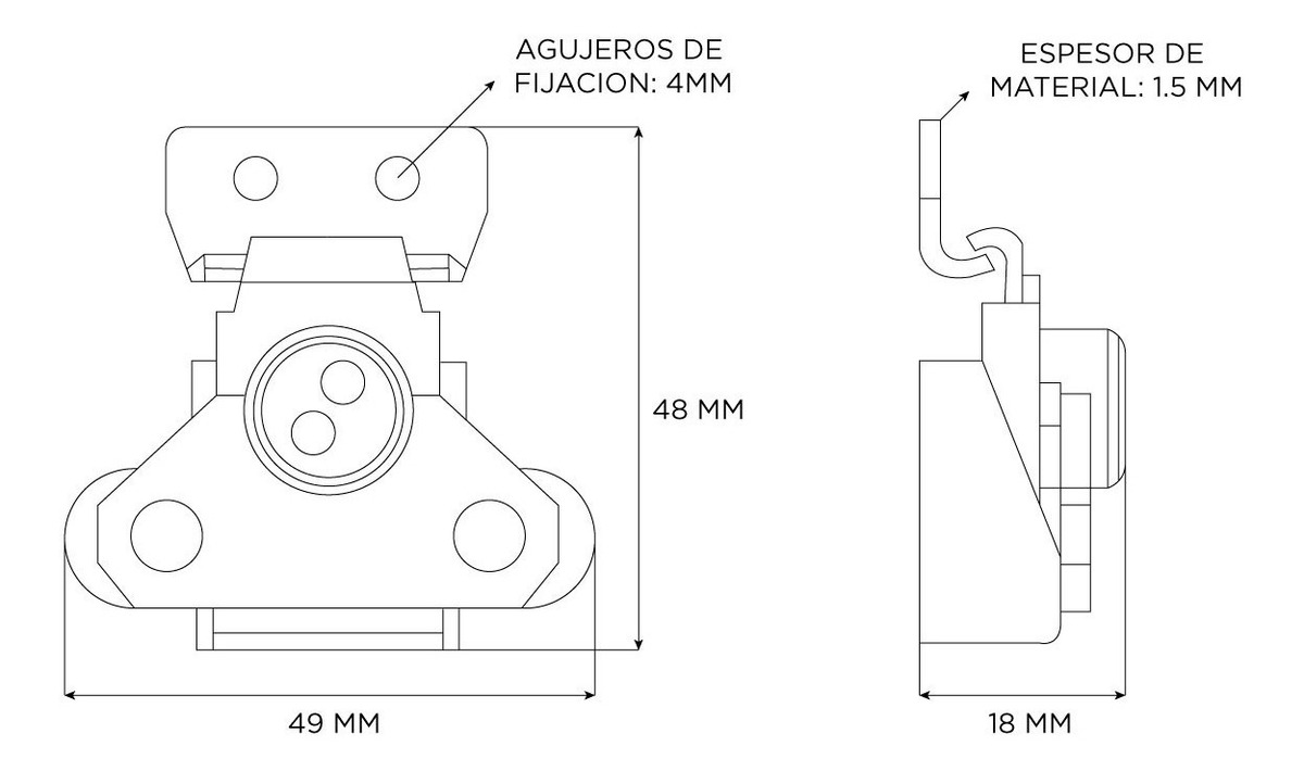 TIPO DE PRODUCTO: CIERRE DE EXTERIOR TIPO: MARIPOSA MATERIAL: ACERO SUPERFICIE: GALVANIZADO ORIFICIOS DE MONTAJE: 4 MM LLAVE NO RESORTE: SI