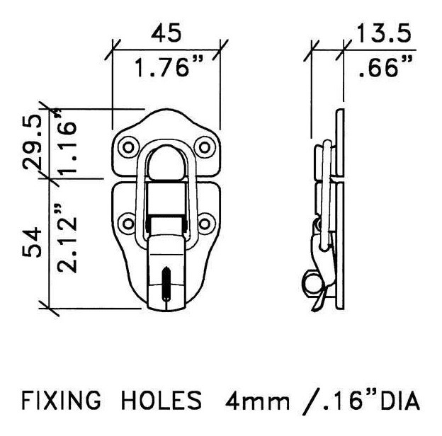 TIPO DE PRODUCTO: CIERRES RAPIDOTIPO: EXTERIORMATERIAL ACEROSUPERFICIE NIQUELADOORIFICIOS DE MONTAJE 4 MMLLAVE:NOPASO DE PERFIL: NOPORTACANDADO: SI
