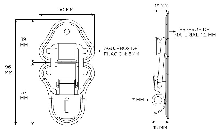 TIPO DE PRODUCTO: CIERRES RAPIDOTIPO: EXTERIORMATERIAL ACEROSUPERFICIE NIQUELADOORIFICIOS DE MONTAJE 4 MMLLAVE:NOPASO DE PERFIL: NOPORTACANDADO: SI