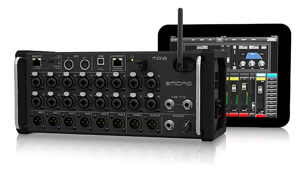 iPad/Android tablet controlled 18-input digital mixer for studio and live application