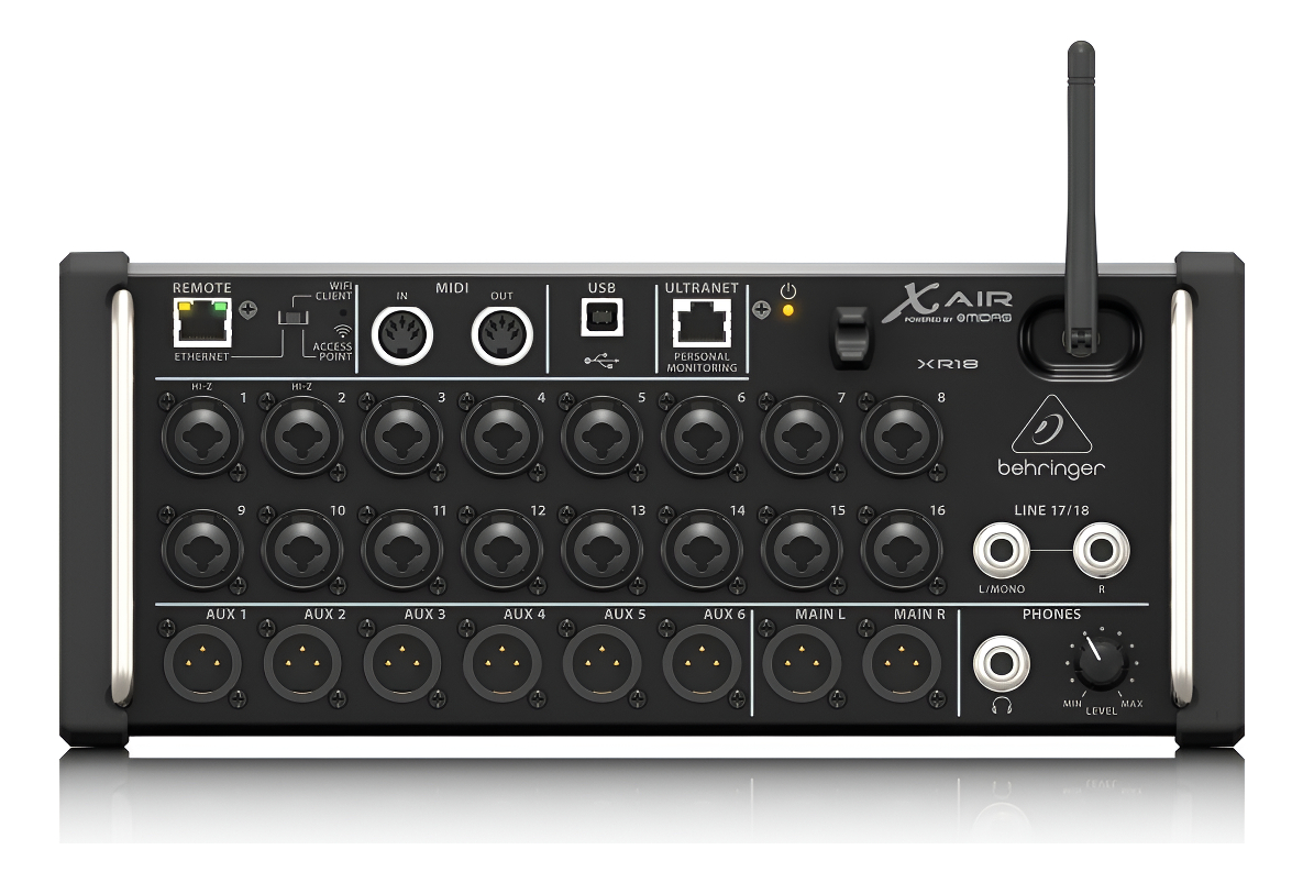 El mezclador digital de 18 canales Behringer X AIR XR18 es ideal tanto para aplicaciones en estudio como en vivo. Con 16 preamplificadores diseñados por Midas, WiFi integrado y grabación estéreo USB, proporciona un sonido y una flexibilidad de calidad profesional. El XR18 incluye funciones avanzadas como mezcla automática, un RTA de 100 bandas y un motor de efectos robusto, lo que lo convierte en una solución de mezcla portátil y potente para cualquier entorno de audio.