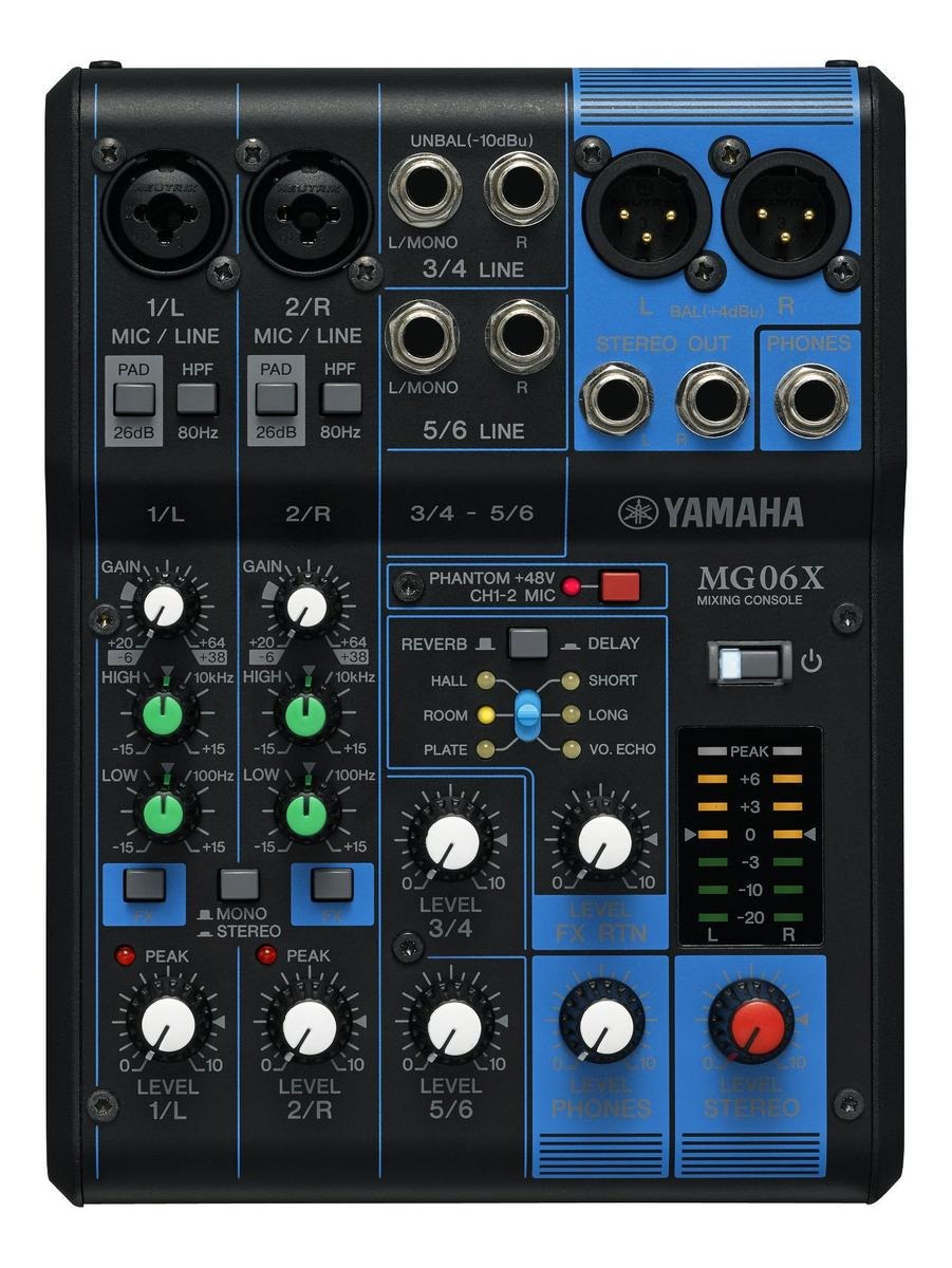 MESA DE MEZCLAS DE 6 CANALES: MÁXIMO 2 ENTRADAS DE MICRO/6 DE LÍNEA (2 MONO + 2 ESTÉREO); 1 BUS ESTÉREO.