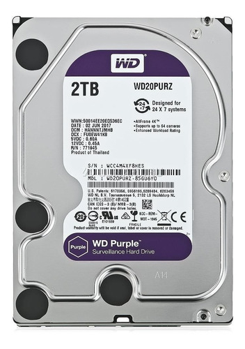 FeaturesAmplíe su visión con hasta 64 cámaras HD de secuencia únicaGestión proactiva del almacenamiento con WDDAÍndices de carga de trabajo mejorados que llegan hasta 180 TB por añoCapacidad2 TBFormato3.5-InchConectorSATACompatibilidadConecte hasta 64 cámaras por disco para los sistemas de seguridad con videovigilancia gracias a sus más de ocho ranuras.InterfazSATAVelocidad de transferenciaup to 175MB/sDisk Speed (RPM)Recording TechnologyCMRCache…