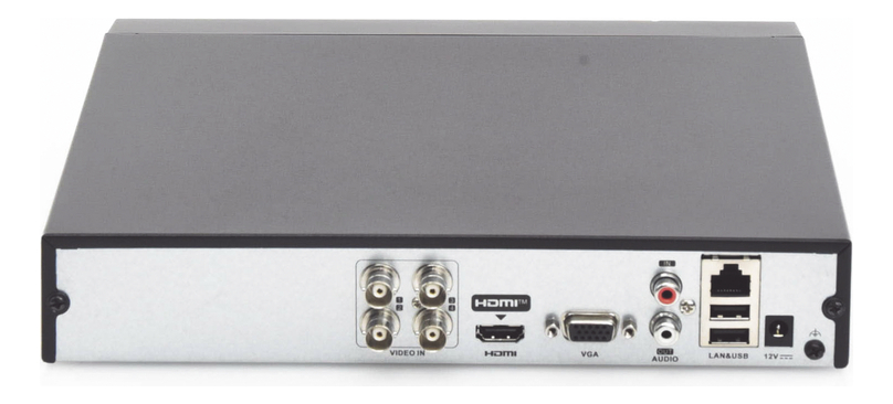 El diseño del DVR es compacto y funcional, con dimensiones que facilitan su colocación en diversos espacios. Incluye varios conectores de salida, incluyendo HDMI y VGA, lo que permite la conexión a diferentes monitores y sistemas de audio. Además, la grabación puede configurarse en modos continuo o mediante detección de movimiento, ofreciendo flexibilidad según las necesidades de seguridad.