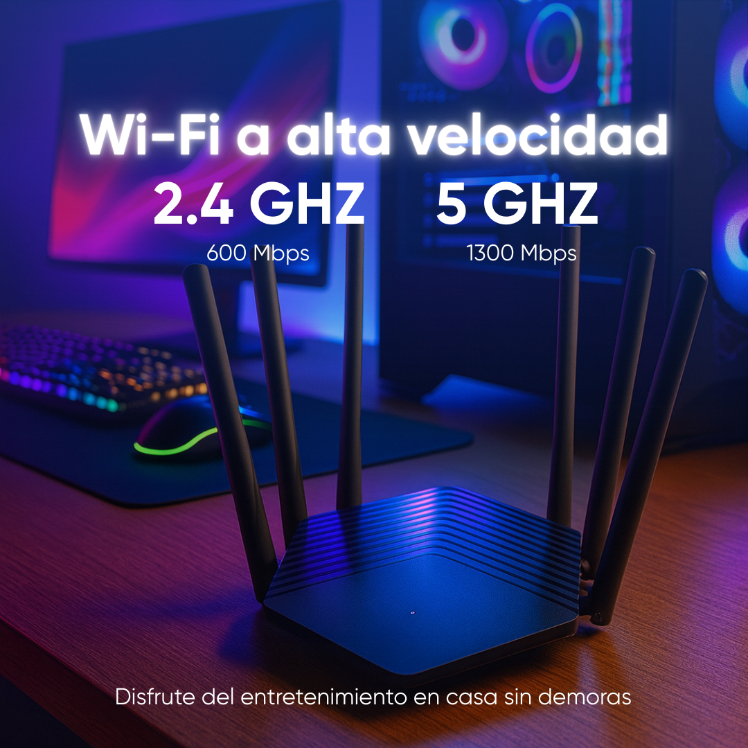 Ratio de señal: 600 Mbps a 2,4 GHz, 1300 Mbps a 5 GHz