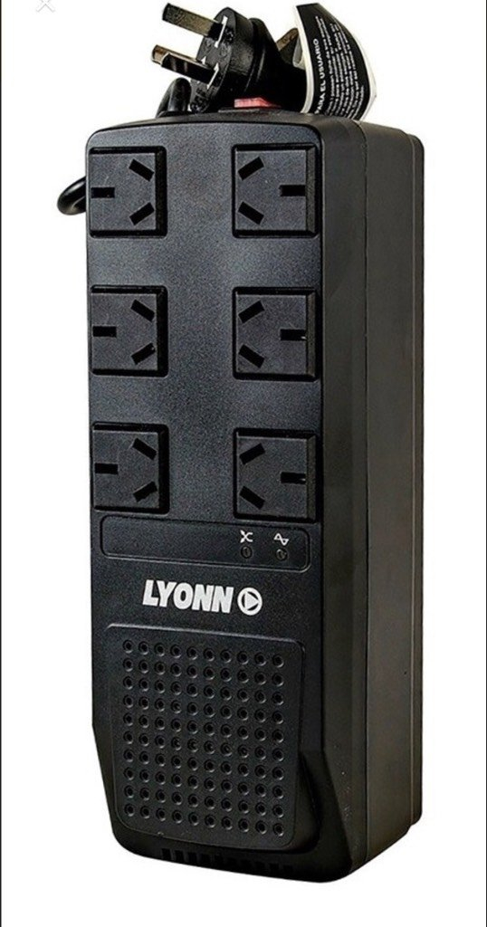 Marca LyonnProfundidad 87.5 mmAltura 90 mmVoltaje de entrada 220VLÃnea TCANivel máximo de ruido 40 dBModelo TCA-1200NCantidad de tomas 6Voltaje de salida 220VcaTipos de producto EstabilizadorPotencia nominal 1200 VADispositivos aptos Computadoras,Impresoras láser,MonitoresPeso 1.54 kg