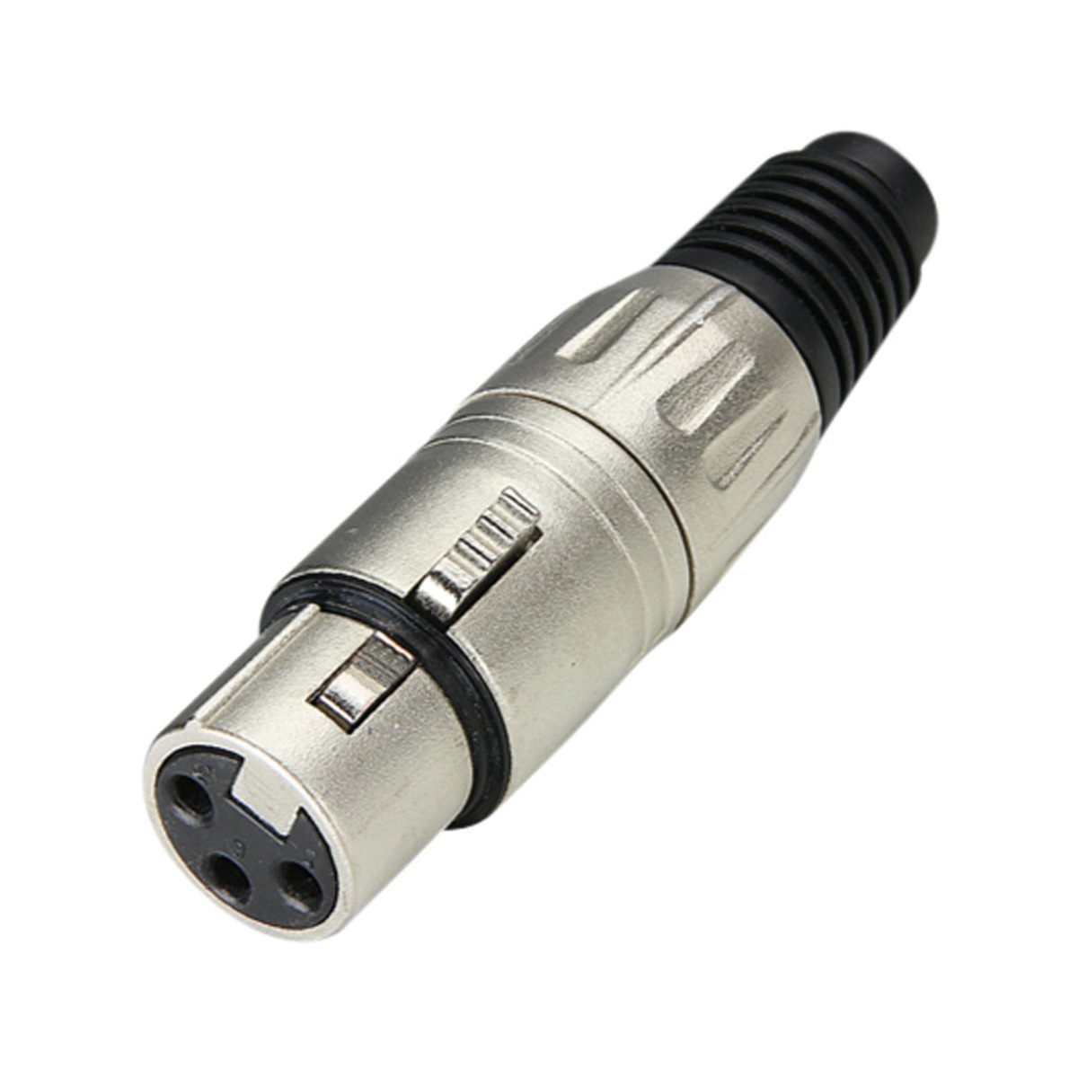 TIPO DE PRODUCTO: CONECTORES CABLETIPO: XLR HEMBRANÚMERO DE PINES 3GENERO: HEMBRADIÁMETRO DEL CABLE: 5 – 7 MMCONTACTOS: PLATEADOTIPO DE CONEXIÓN: POR SOLDADURASCOLOR PLATEADOCARCASA ZINC DE FUNDICIÓN