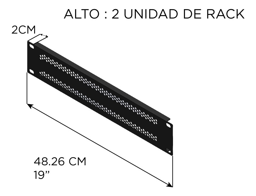 TIPO DE PRODUCTO: CHAPA / PANEL PARA RACK NORMALIZADO 19″TIPO: VENTILACION MATERIAL ACEROCOLOR NEGROALTURA 2 UANCHO: 19 “ESPESOR: 1.5 MM