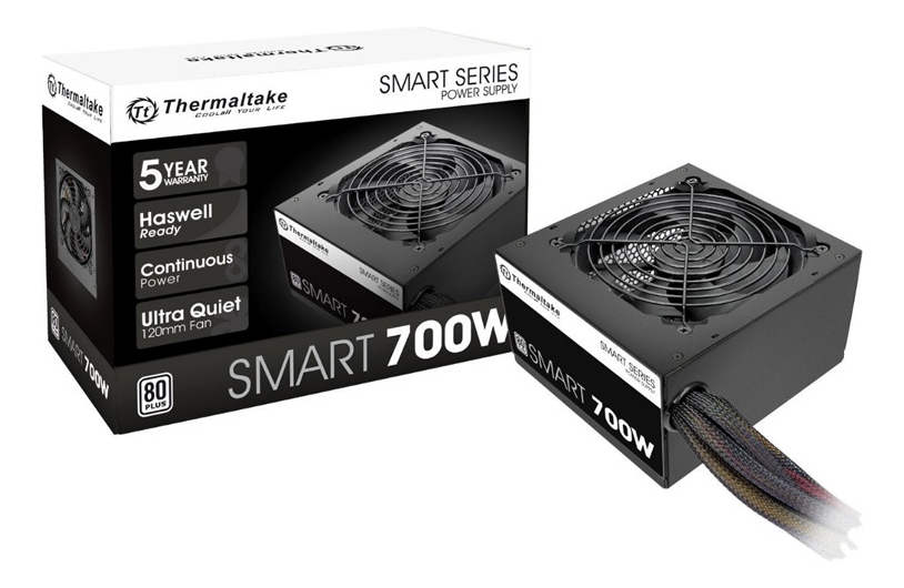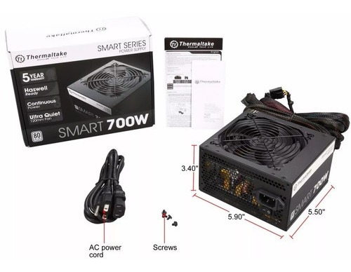 Color Negro MPN SPD-700AH2NXW-D Tipo de fuente de alimentación para PC ATX Frecuencia 60 Hz Cantidad de conectores SATA 6 Voltaje 220V Con protección de bajo voltaje Sí Modelo de la fuente Smart White 700w Marca de la fuente Thermaltake Certificación de eficiencia 80 Plus Diámetro del ventilador 120 mm Línea Smart Cantidad de conectores…