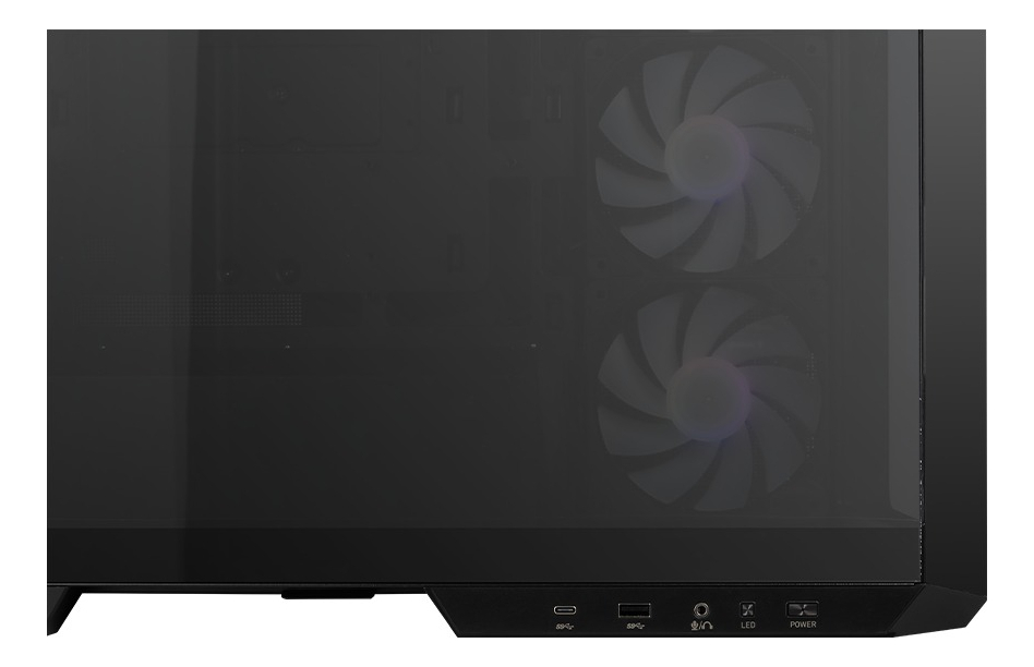 Puertos E/S: 1 x USB 3.2 Gen 1 Type-A, 1 x USB 3.2 Gen 2×2 Type-C, 1 x Audio-Out / Mic-in, 1 x LED Switch Button, 1 x Power Button.