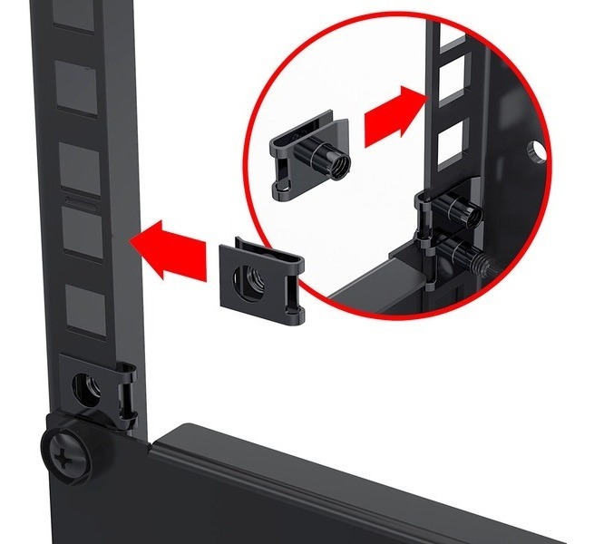 SE PUEDEN ENCAJAR FÁCILMENTE EN LOS AGUJEROS DEL RIEL CREANDO UN SOPORTE CON ROSCA ELIMINANDO LA NECESIDAD DE TUERCAS ENJAULADAS.