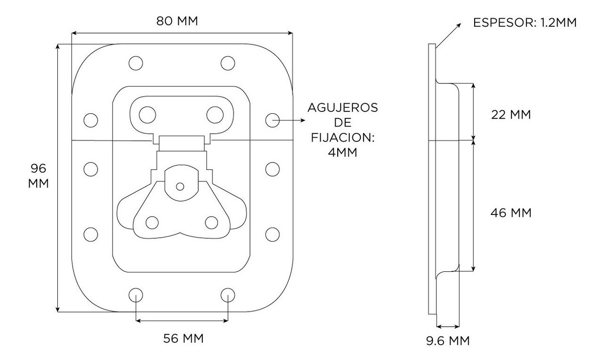 TIPO DE PRODUCTO: CIERRE DE EMBUTIRTIPO: MARIPOSATAMAÑO: CHICOMATERIAL: ACEROSUPERFICIE: GALVANIZADOORIFICIOS DE MONTAJE: 4 MMLLAVE NOOFF SET: NOCON RESORTE SÍ