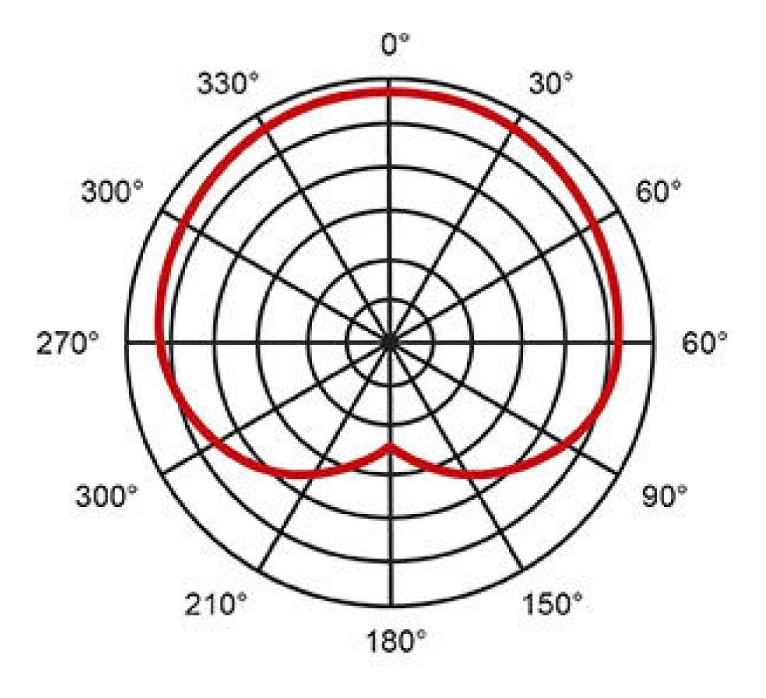 El patrón polar cardioide aísla las voces del ruido de fondo en el escenario o en el estudio.