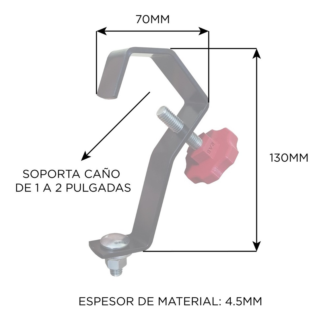 TIPO DE PRODUCTO: MORSA CLAMP PARA ESTRUCTURA USO: PARA EQUIPOS DE ILUMINACION LED O USOS MULTIPLESCOLOR: PLATEADO (ZINCADO)SOPORTA: 30 KGESPESOR: 3.2 MMSOPORTA CAÑOS DE: 1 A 2 PULGADASINDUSTRIA ARGENTINA
