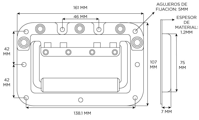 TIPO DE PRODUCTO: MANIJATIPO: EMBUTIRMATERIAL: ACEROSUPERFICIE: GALVANIZADOCOLOR:PLATEADOPROTECCIÓN REMACHADA: NOMATERIAL DE AGARRE: PVCCOLOR DE AGARRE: NEGROORIFICIOS DE MONTAJE 5MMRESORTE SÍ