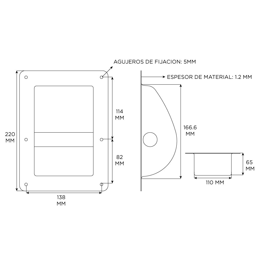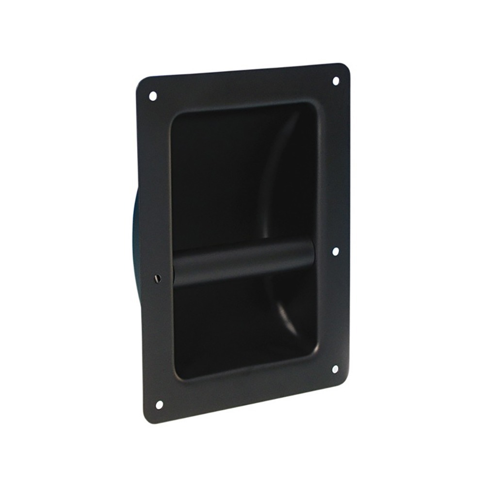 TIPO DE PRODUCTO: MANIJAS PARA BAFLES TIPO: METALICA CHICA MATERIAL ACERO SUPERFICIE TEXTURIZADA COLOR NEGRO ESPESOR 1.2 MM ORIFICIOS DE MONTAJE 5 MM