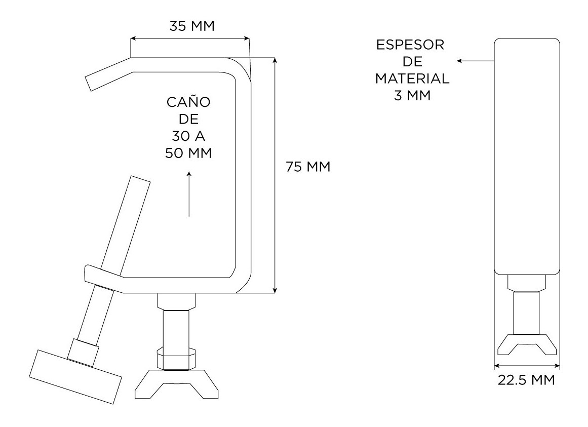 TIPO DE PRODUCTO: MORSA CLAMP PARA ESTRUCTURA USO: PARA EQUIPOS DE ILUMINACIONMATERIAL ALUMINIOSOPORTA CAÑOS DE 30 A 50 MMCOLOR: NEGROSOPORTA: 40 KGESPESOR: 3 MM
