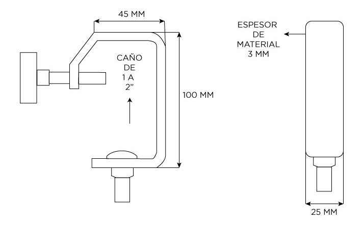 TIPO DE PRODUCTO: MORSA CLAMP PARA ESTRUCTURA USO: PARA EQUIPOS DE ILUMINACIONSOPORTA: 50 KGESPESOR: 3MMSOPORTA CAÑOS DE: 1 A 2 PULGADASINDUSTRIA ARGENTINA