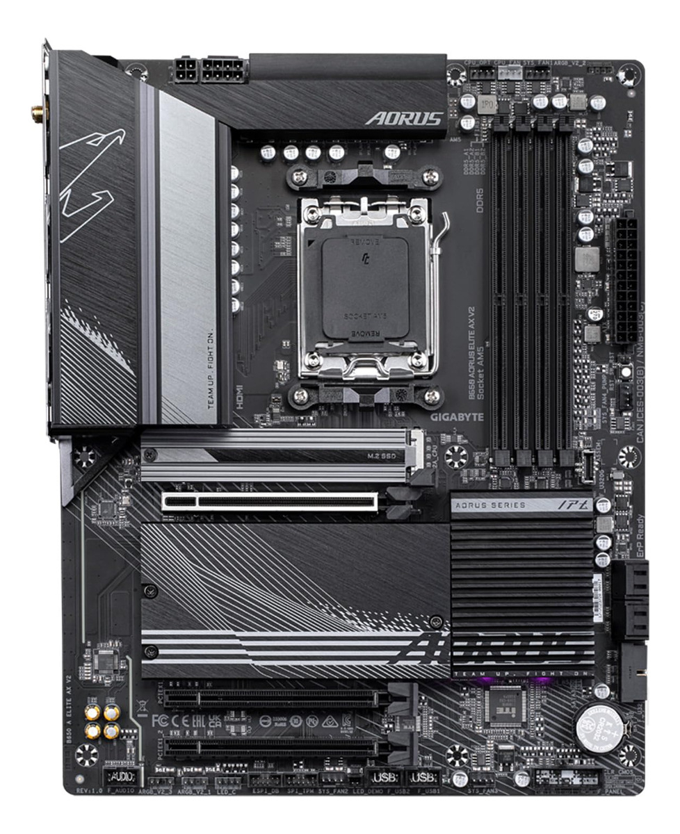 La B650 AORUS ELITE AX V2 también incluye avanzadas características de conectividad, como Wi-Fi AX, que permite disfrutar de una conexión a Internet rápida y estable. Además, sus múltiples puertos USB y ranuras PCIe aseguran que tengas la flexibilidad necesaria para futuras actualizaciones y expansiones, adaptándose a las necesidades de cualquier usuario.