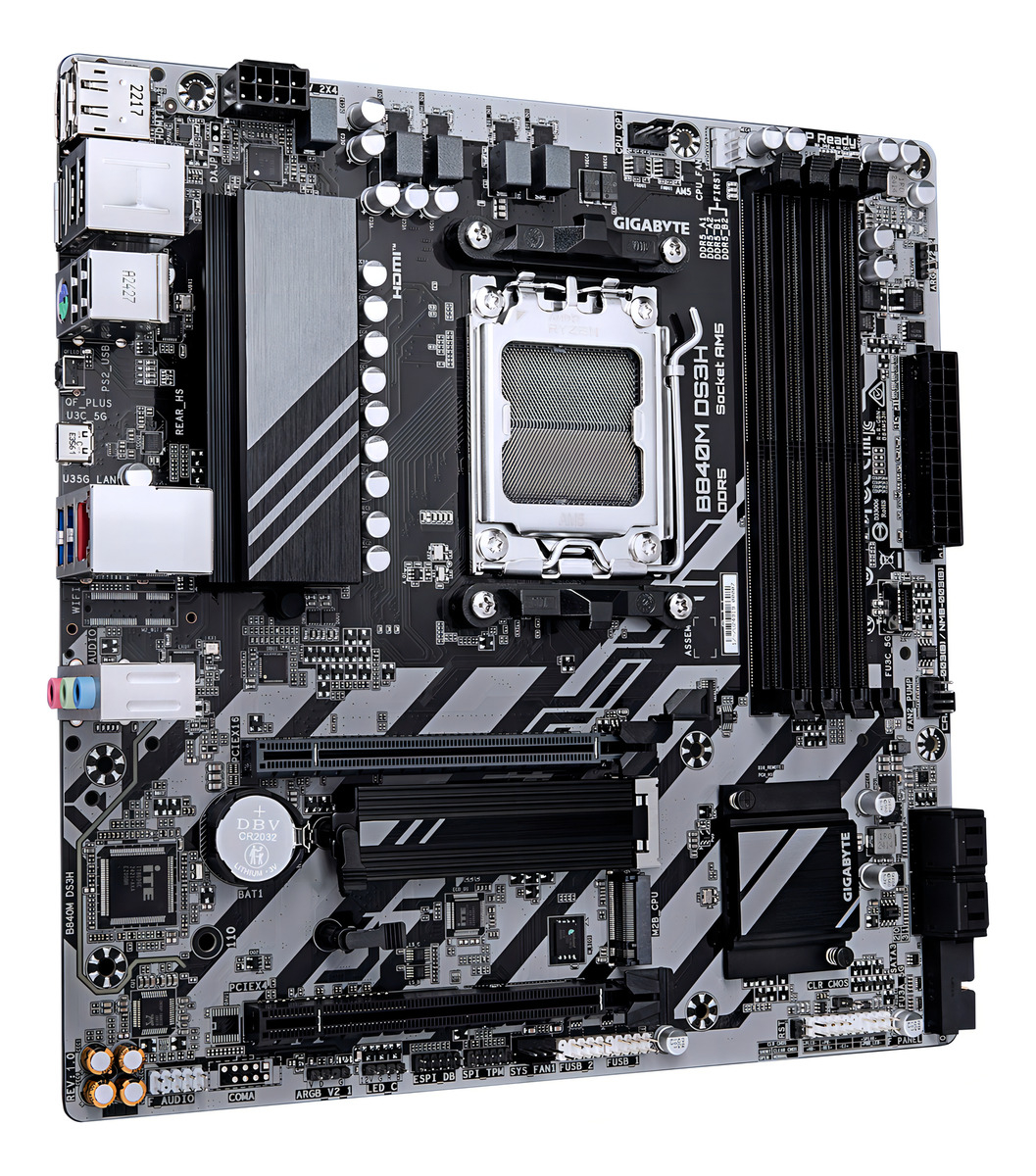 La motherboard Gigabyte B840M DS3H es la elección ideal para quienes buscan rendimiento y durabilidad en sus sistemas basados en AMD. Con un chipset AMD B840 y un socket AM5, esta placa madre está diseñada para soportar las últimas tecnologÃas, garantizando una experiencia de usuario fluida y eficiente.