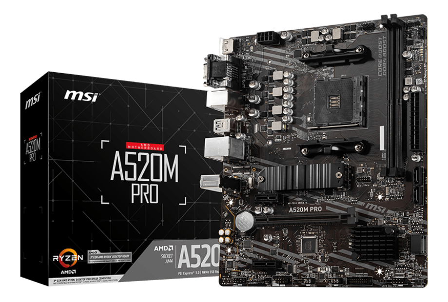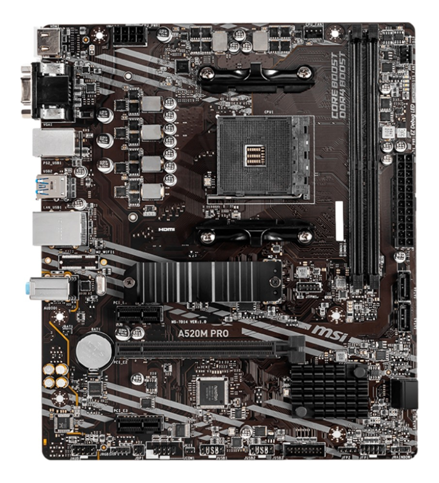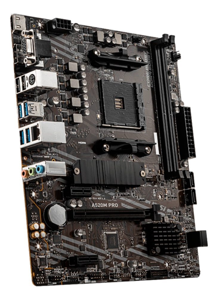 La Motherboard MSI A520M PRO es la elección ideal para quienes buscan un rendimiento sólido y confiable en sus sistemas basados en AMD. Con su diseño en color negro y un factor de forma mATX, se adapta perfectamente a una variedad de gabinetes, ofreciendo una estética moderna y funcional.