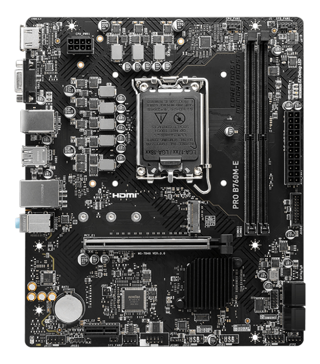 CHIPSET INTEL B760CPU Support Intel® Core™ 14th/ 13th/ 12th Gen Processors, Intel® Pentium® Gold and Celeron® Processors LGA 1700MEMORY 2x DDR5, Maximum Memory Capacity 128GB Memory Support DDR5 6400+(OC)/ 6200(OC)/ 6000(OC)/ 5800(OC)/ 5600(JEDEC)/ 5400(JEDEC)/ 5200(JEDEC)/ 5000(JEDEC)/ 4800(JEDEC) Max. overclocking frequency: • 1DPC 1R Max speed up to 6400+ MHz • 1DPC 2R Max speed up…