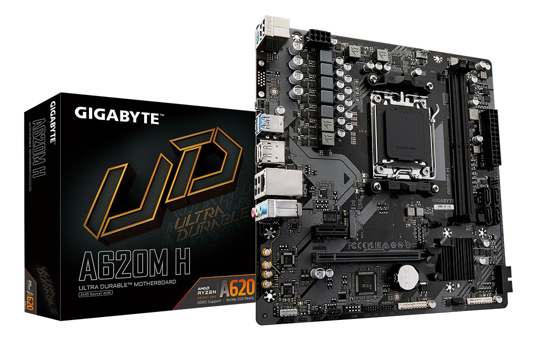 UPCAMD Socket AM5, soporte para: Procesadores AMD Ryzen™ 7000/ Ryzen™ 8000 Seriesconjunto de chipsAMD A620Memoria1. Compatibilidad con módulos de memoria DDR5 6400(OC)/6200(OC)/6000(OC)/5600(OC)/5200/4800/4400 MT/s 2. 2 x zócalos DIMM DDR5 que admiten hasta 96 GB (48 GB de capacidad DIMM única) de memoria del sistema 3. Arquitectura de memoria de doble canal 4. Compatibilidad con módulos…