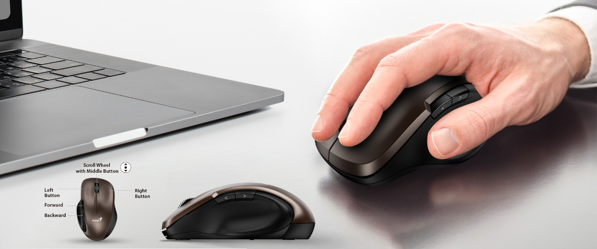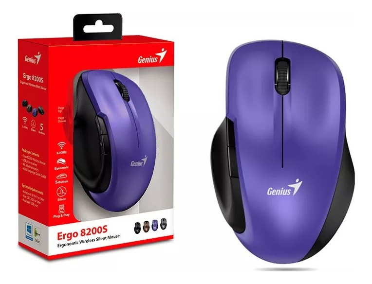 Ergo 8200S combina funciones avanzadas, como forma ergonómica para comodidad de la palma y la muñeca, clic silencioso, rueda de desplazamiento leve, 5 botones con Page Up y Page Down adicionales para página web.