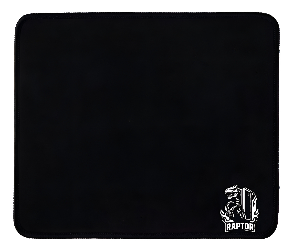El diseño liso en color negro con el logo de Raptor le da un toque elegante y moderno, adaptándose a cualquier configuración de escritorio. Este mouse pad es perfecto para quienes buscan un accesorio funcional y estético que complemente su equipo de juego.