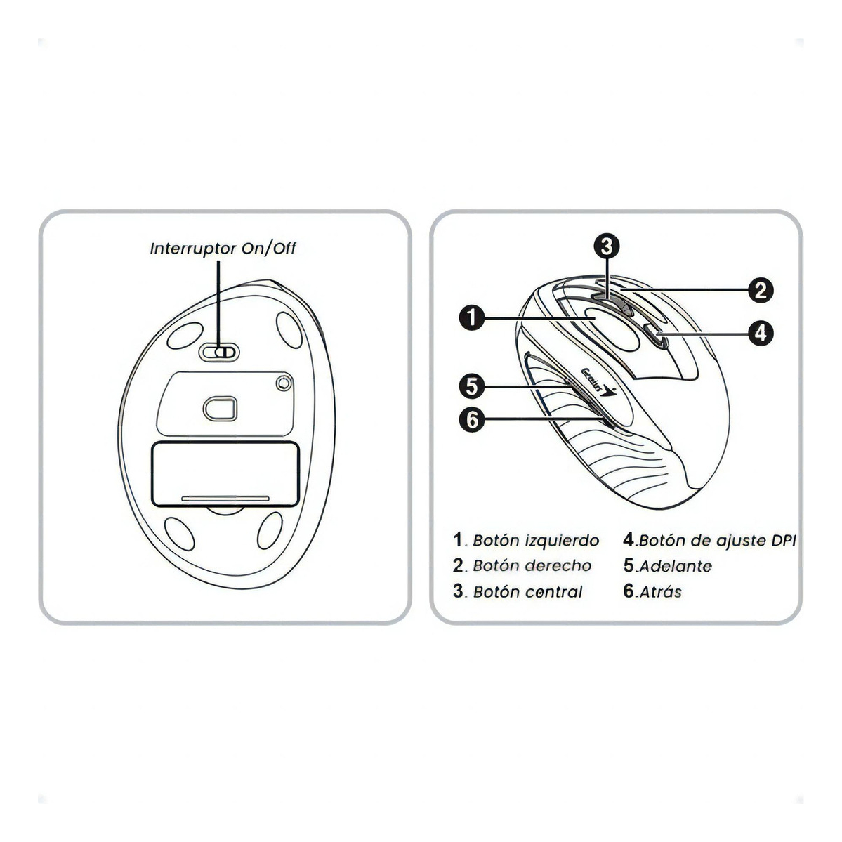 Resolucion 800 / 1200 / 1600 DPI Alimentacion 1 pila AA Modelo Ergo 8250S Tipo Optico Interfaz 2.4 GHz Botones 6 Puerto USB Alcance 10 metros (sin interrumpir) Medidas 111.2 x 78.3 x 73.8 mm Peso 97 gr