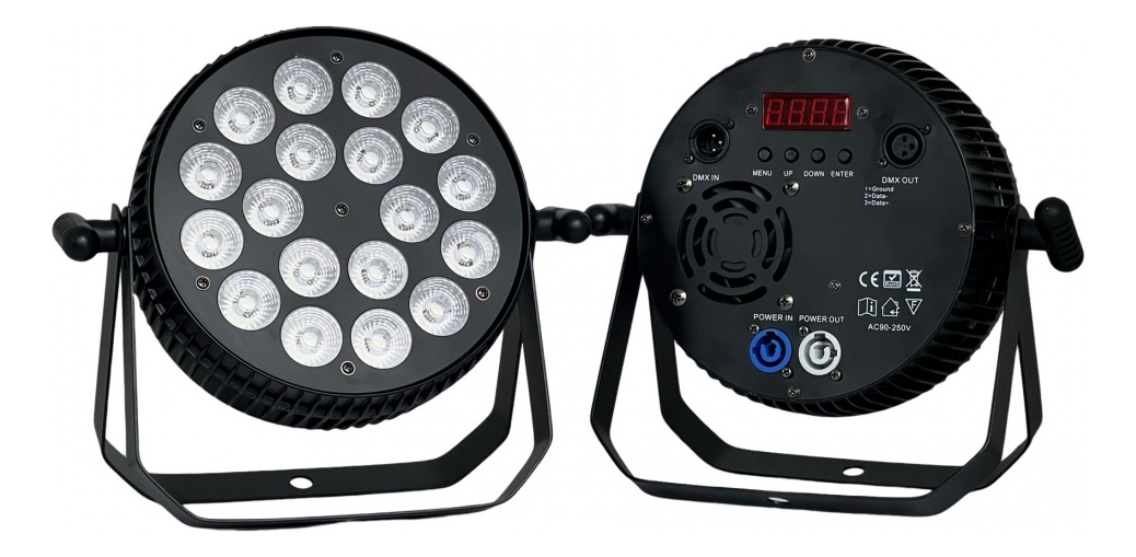 PAR LED FLAT – 18x10W (180w) RGBW 4-en-1 con Efectos Integrados