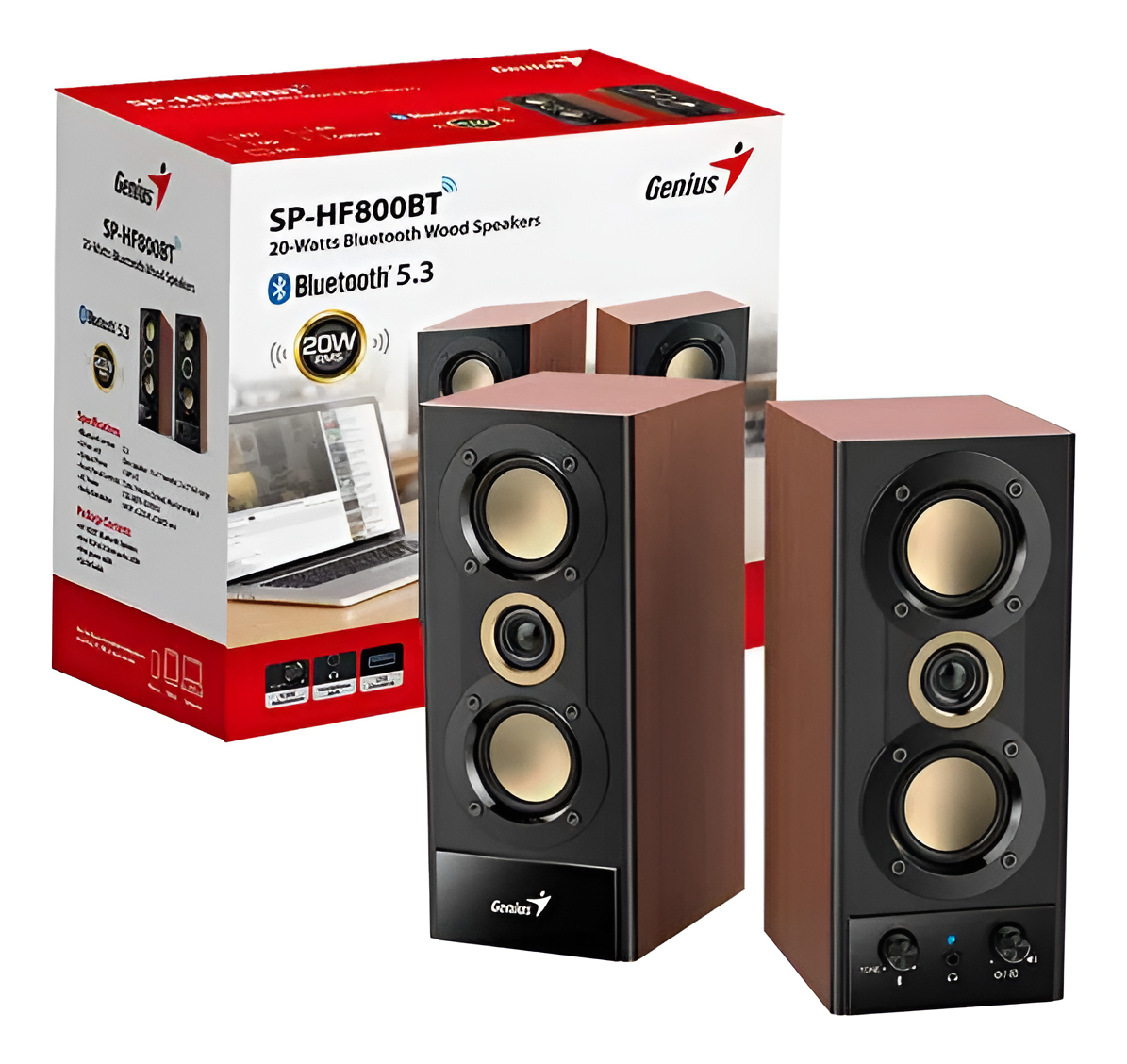 El Parlante Genius RS2 SP-HF800BT es una opción ideal para aquellos que buscan calidad de sonido y diseño elegante. Con su acabado en madera de color marrón, este modelo se integra a la perfección en cualquier ambiente, ofreciendo un toque de sofisticación a tu hogar u oficina. La potencia de salida de 20 W RMS garantiza una experiencia auditiva envolvente, perfecta para disfrutar de música, películas o juegos.