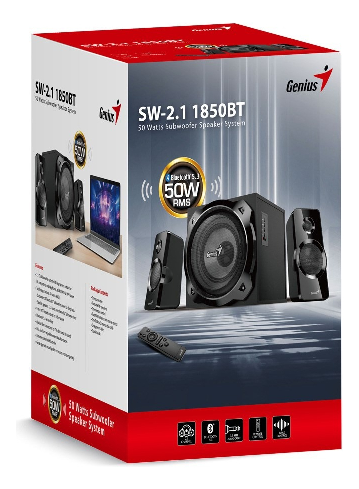 Diadema 50 watts (Subwoofer: 25W, Satélite: 12.5W x 2)
