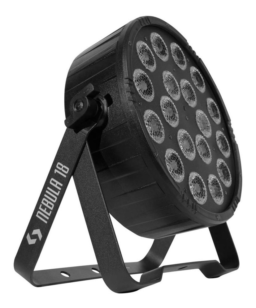 NEBULA 18 ES UN BAÑADOR PROFESIONAL QUE CUENTA CON 18 LEDS RGBAW+UV DE 12W, CON UN ÁNGULO DE HAZ DE 25º. SU TECNOLOGÍA LED DE SEIS COLORES PERMITE UNA MEZCLA SUAVE SIN SOMBRAS MULTICOLOR, LOGRANDO INNUMERABLE CANTIDAD DE COLORES PROFUNDAMENTE SATURADOS. NEBULA 18 TIENE DIMMER LINEAL PARA TODOS LOS COLORES, EFECTO UV, FUNCIÓN ESTROBO, 33 MACROS DE COLOR Y UNA FUNCIÓN DE BALANCE DE BLANCO QUE LO CONVIERTE EN UNA OPCIÓN IDEAL PARA APLICACIONES DE TIPO AUDIOVISUAL.