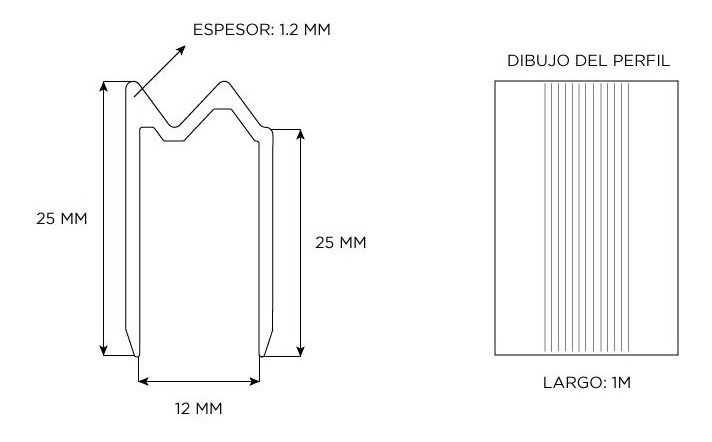 TIPO DE PRODUCTO: PERFILES DE ALUMINIO TIPO: CIERRE MATERIAL: ALUMINIO SUPERFICIE EN BRUTO LONGITUD: 1M ESPESOR 1.2 MM