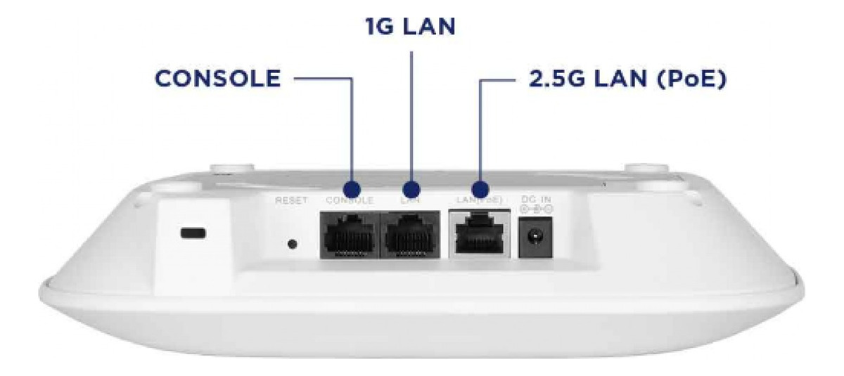 • 1 x RJ45 console port, 1 x 2.5 Gbps Ethernet LAN (PoE), 1 x 10/100/1000 Mbps Ethernet LAN, factory reset, power input